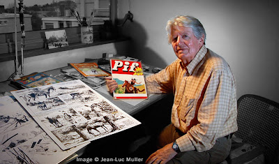 Son personnage de Loup-Noir, ce magnifique Sioux solitaire épris de justice, était devenu son frère de papier. Il en partageait beaucoup de valeurs, au fond.Rencontré en 2008 et interviewé début 2010, j'espérais pouvoir compléter les images tournées avec lui. (il n'était pas friand de l'exercice, en bon Breton taciturne). Son état de santé décalait indéfiniment ce moment, mais je pense surtout qu'il n'avait guère le goût de la lumière braquée sur lui. Il préférait de loin qu'on discute autour d'un déjeuner de choses plus passionnantes, en tous cas à ses yeux.